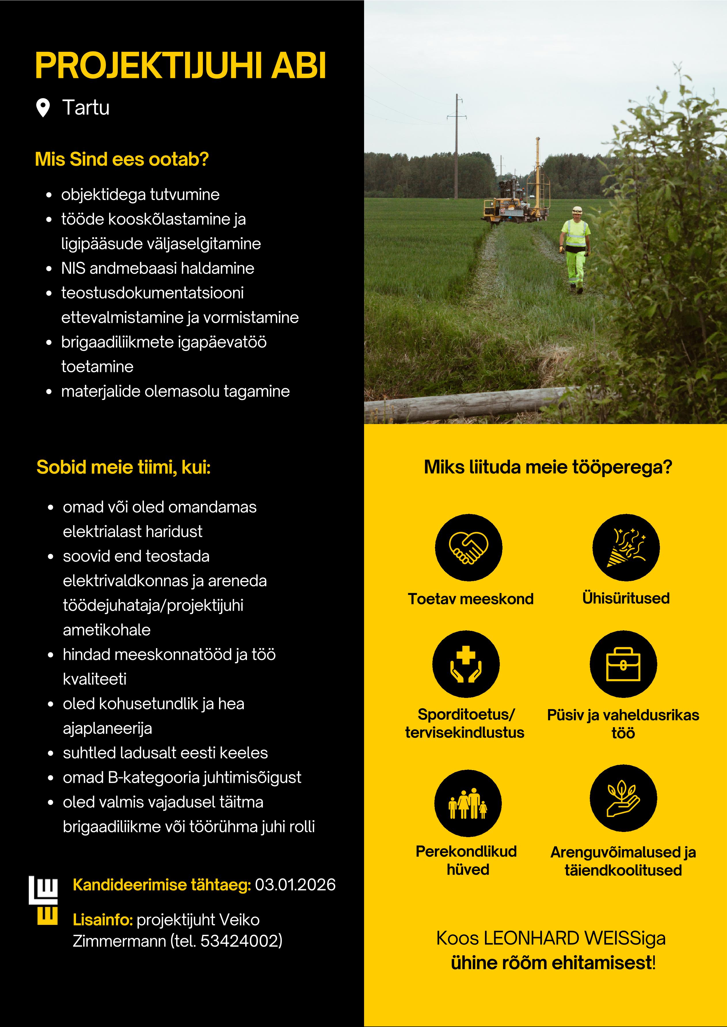LEONHARD WEISS on Baltimaades ja Skandinaavias tegutsev pikaajalise kogemusega rööbasteede, teede ja elektrivõrkude projekteerimis-, ehitus- ja hooldusettevõte. Kuulume 1900. aastal loodud Saksa pereettevõtte LEONHARD WEISS gruppi ning oleme usaldusväärne partner meie töötajatele ja klientidele. Meie juhtpõhimõte on Tundke rõõmu ehitamisest koos LEONHARD WEISSIGA.