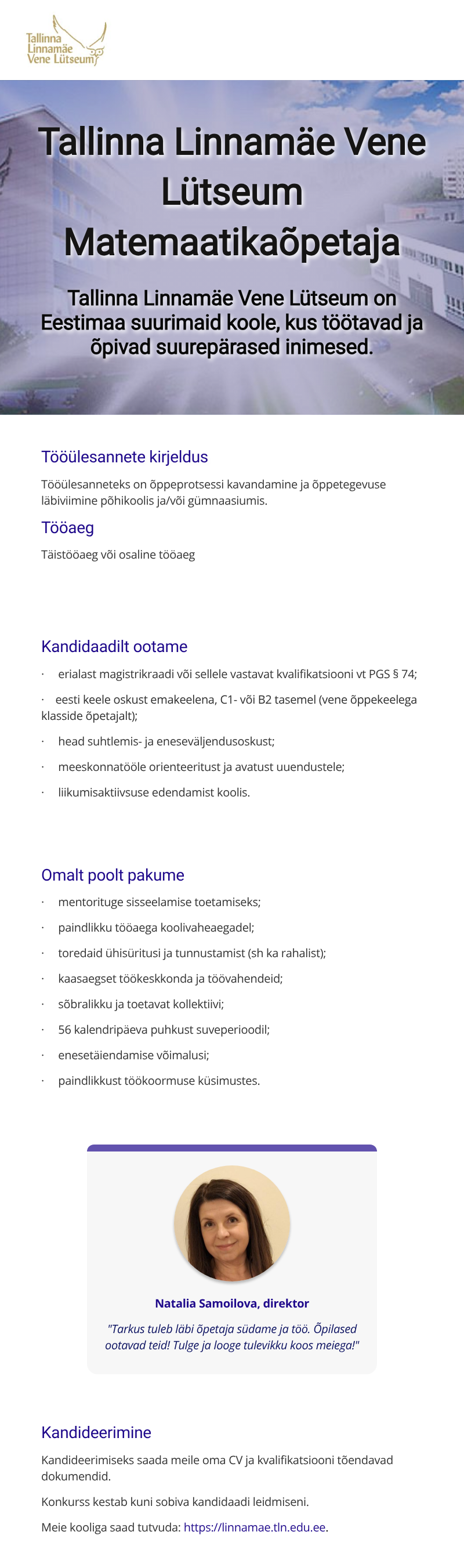 Selle ametikoha keskmise palga info leiad aadressilt palgad.ee.