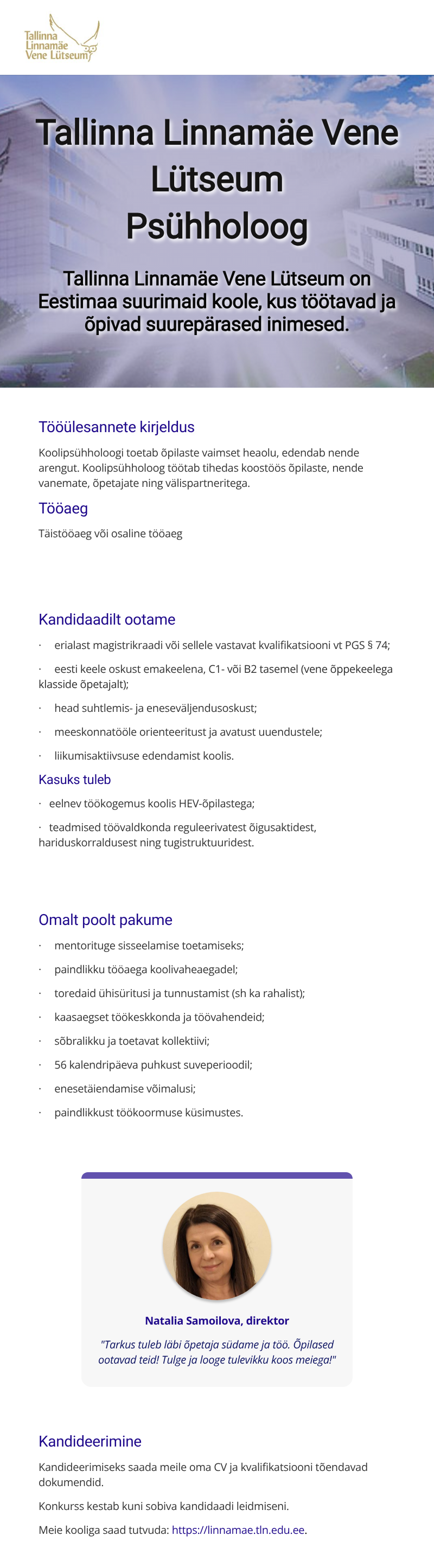 Tallinna Kristiine Gümnaasiumi õppekorralduse juht