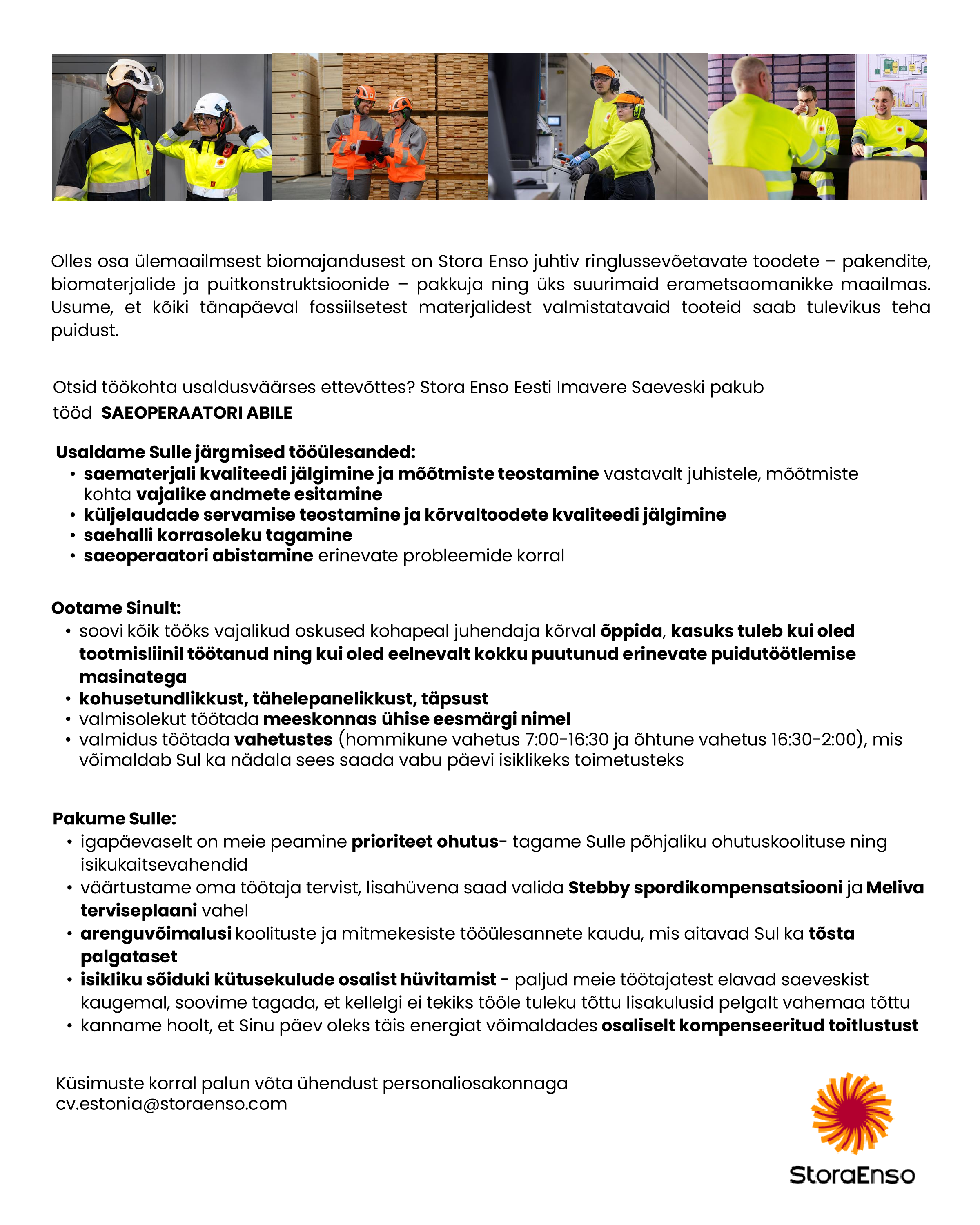 Meie eesmärk "Tee head inimestele ja planeedile. Taastumatute materjalide asendamine taastuvate toodetega" toetab meie usku, et kõike, mida tänapäeval saab teha fossiilidel põhinevate materjalidega, saab tulevikus teha puidust, ja see tõstab esile Stora Enso võimaluse panustada rohelisemasse majandusse.