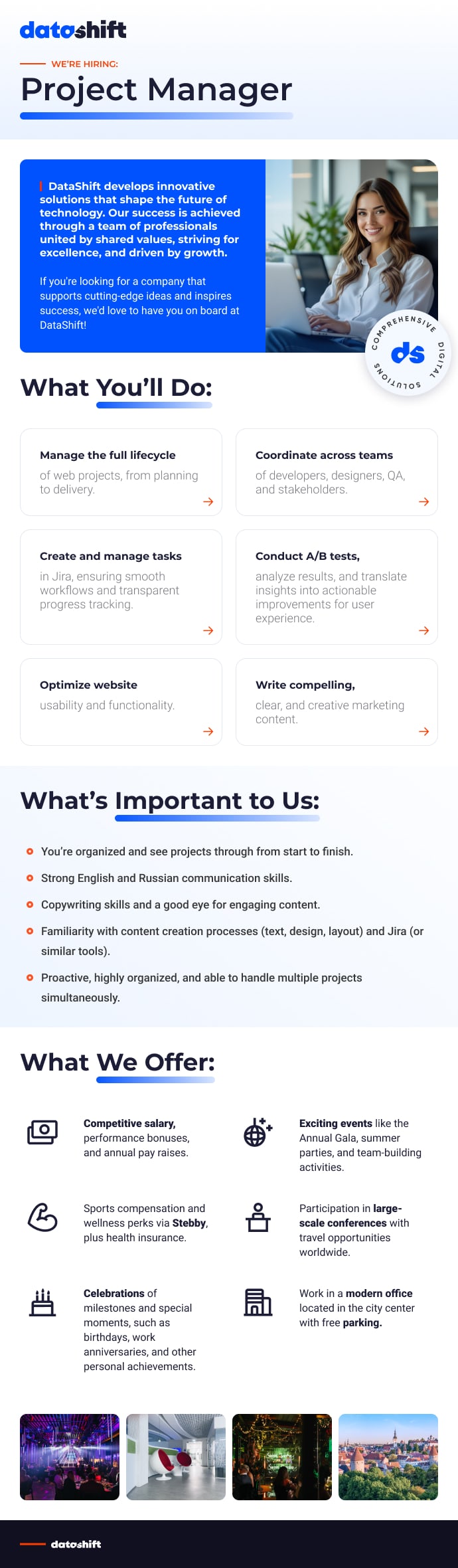 DataShift develops innovative solutions that shape the future of technology. Our success is achieved through a team of professionals united by shared values, striving for excellence, and driven by growth.