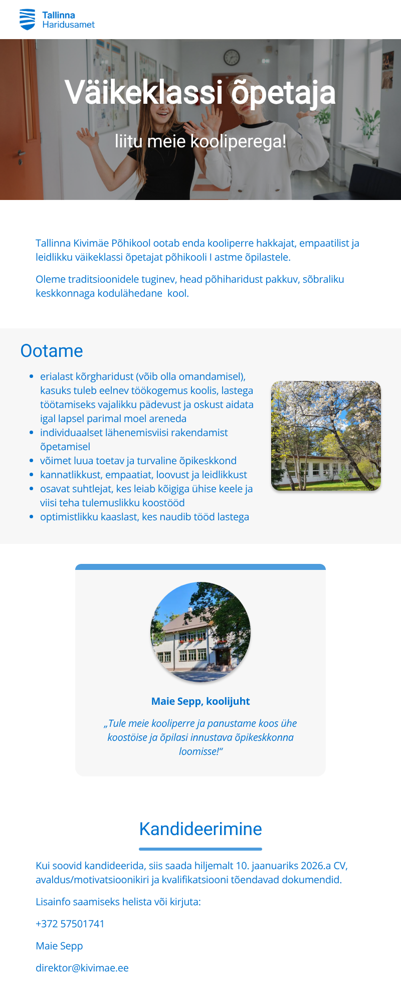 Õppenõustaja ja -spetsialist (tähtajaline ametikoht)