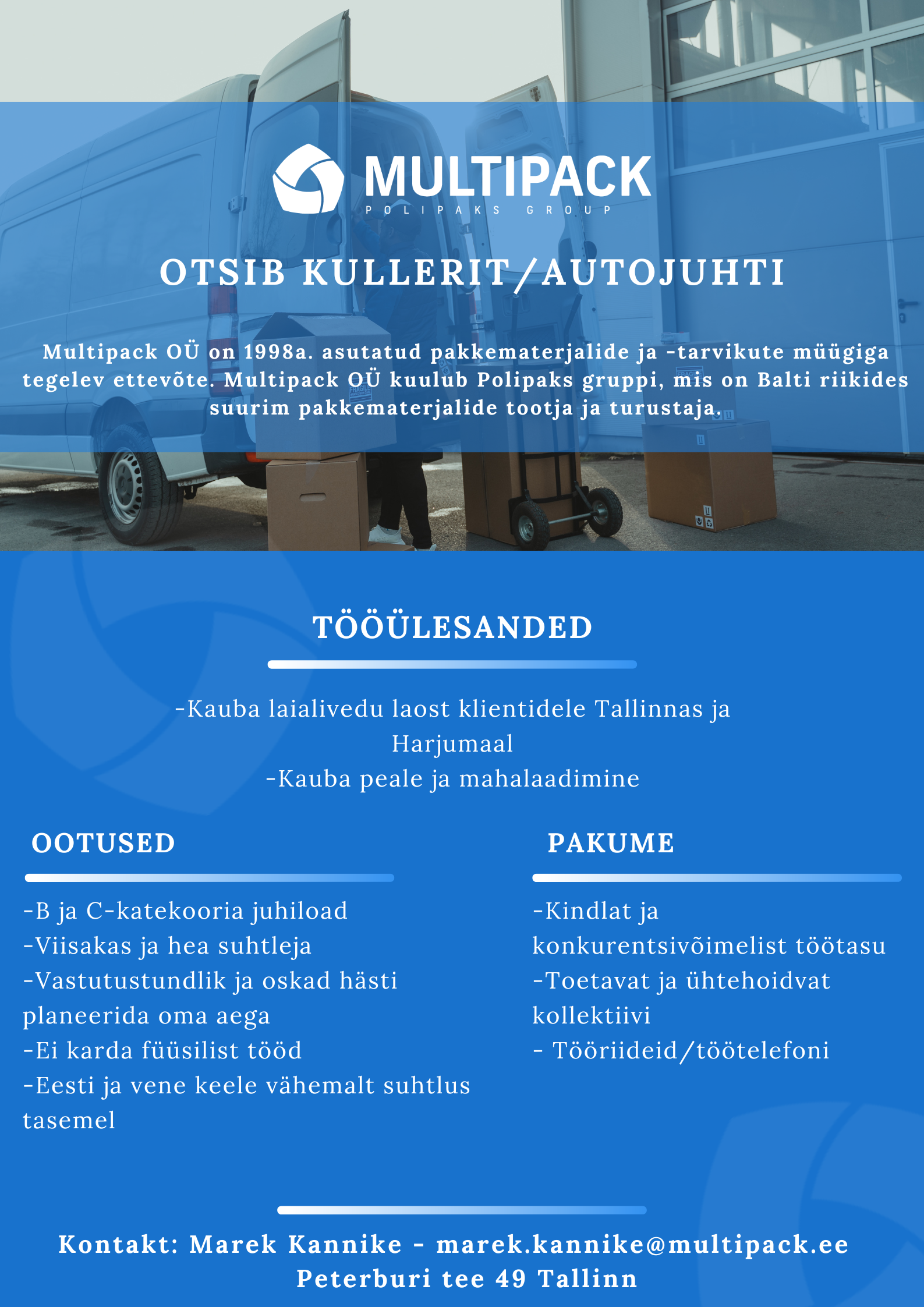 Multipack OÜ on tegutsenud Eesti turul 16 aastat ja tõusnud Eesti juhtivate pakkematerjalide ning pakketarvikute müüjate hulka. Lai tootevalik pakub pakkematerjale nii hulgi- kui ka jaemüüjatele, samuti eraisikutele. Pakume üle 1000 erineva toote värske, külmutatud ja valmistoidu pakendamiseks, lisaks lai sortiment ühekordseid nõusid. Meie ettevõttest saab soetada klassikalisi pakendeid, tellimisel disaintooteid kui ka koostööna välja mõeldud täiesti uusi lahendusi.