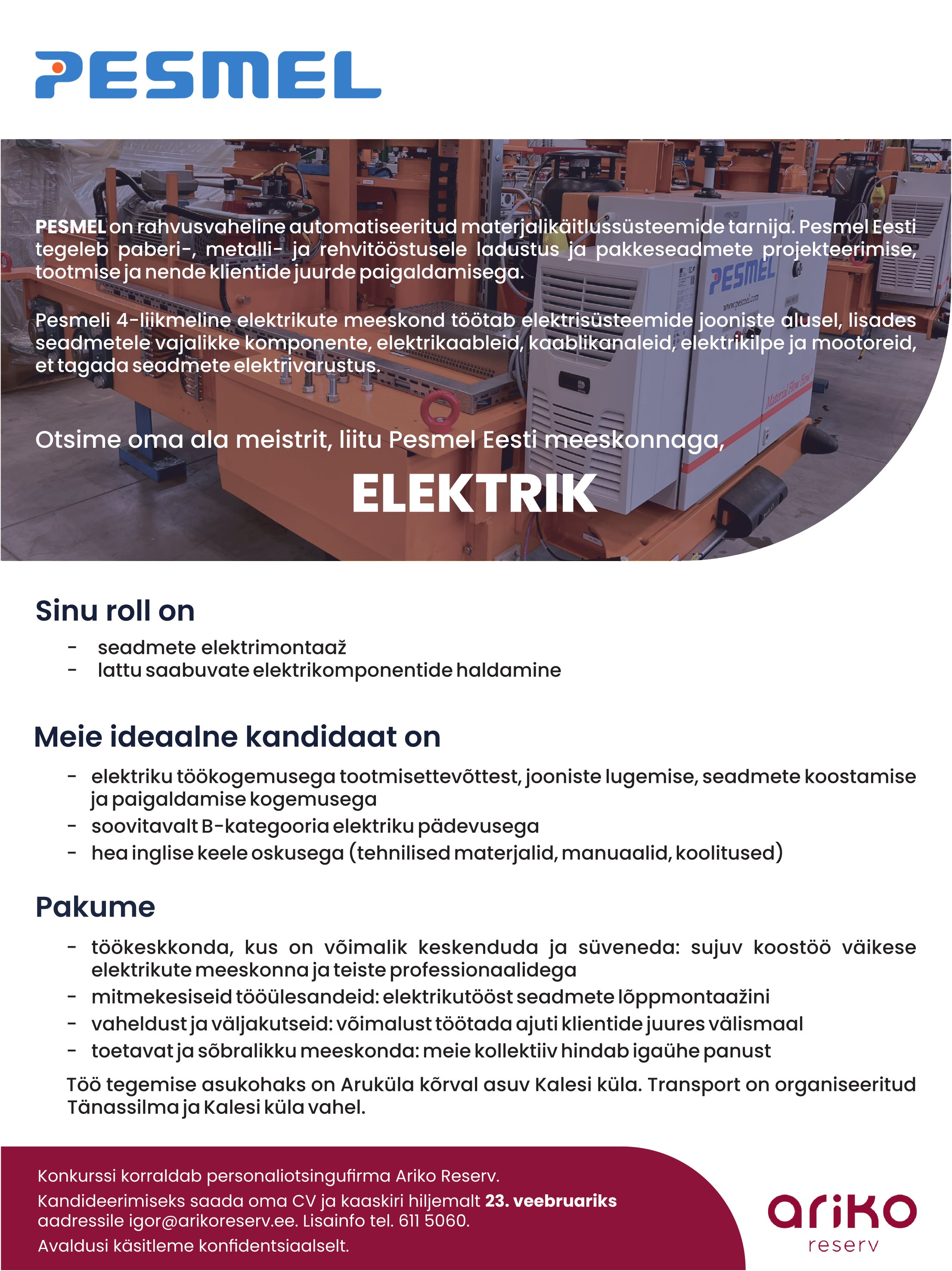Ariko Reserv OÜ kliendiks on Pesmel Eesti AS.