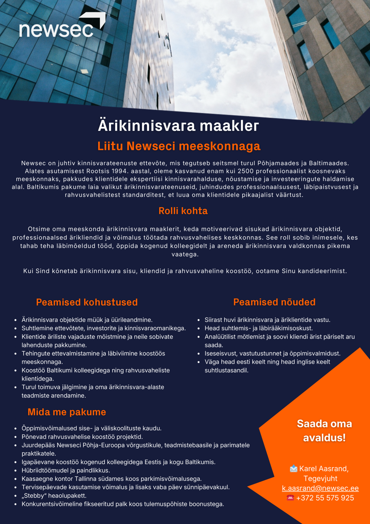 Newsec – terviklikke lahendusi pakkuv Põhja-Euroopa kinnisvaraettevõte – alustas Balti riikides tegevust 2003. aastal ning tegutseb praegu Leedu, Läti ja Eesti turul.