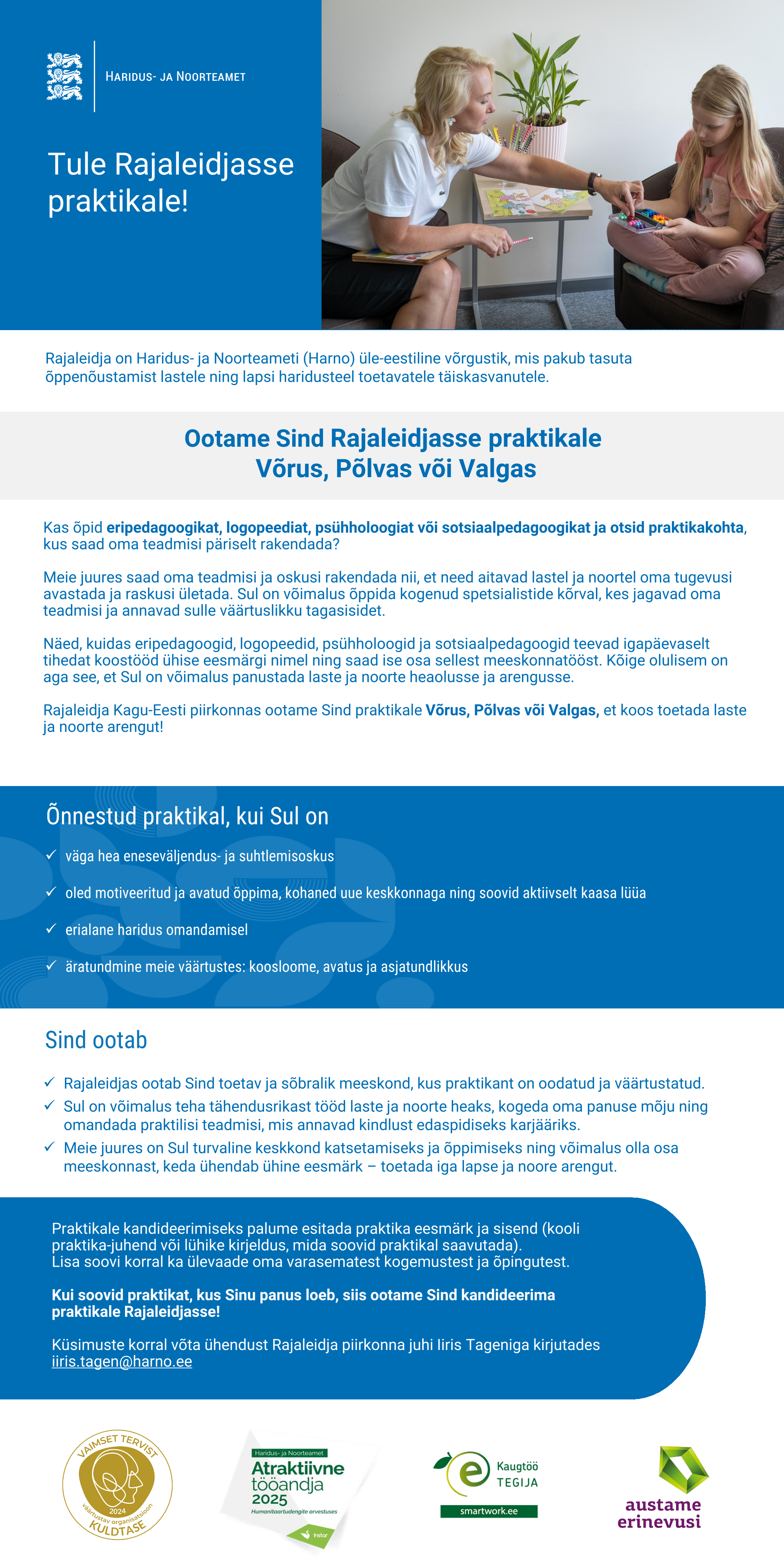 Kas õpid eripedagoogikat, logopeediat, psühholoogiat või sotsiaalpedagoogikat? Tule meile praktikale!