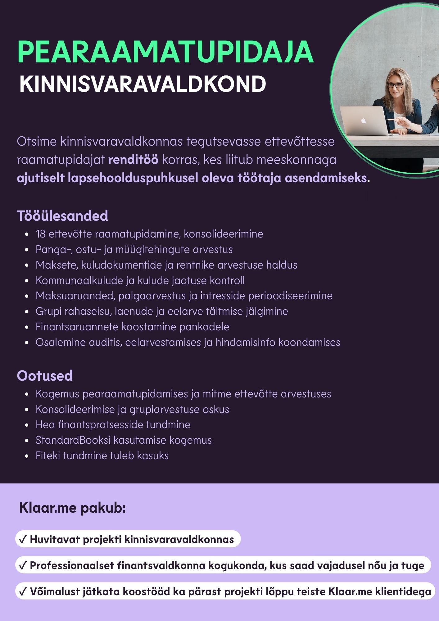 Klaar.me on Eesti esimene finantskompetentsikeskus, mis ühendab kogenud finantsvaldkonna professionaalid. Klaar.me madalaim finantskompetents on pearaamatupidaja.