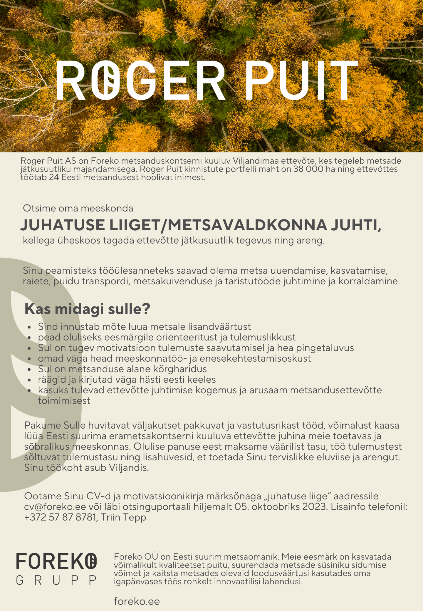Roger Puit AS on Foreko metsanduskontserni kuuluv Viljandimaa ettevõte, kes tegeleb metsade jätkusuutliku majandamisega. Roger Puit kinnistute portfelli maht on 38 000 ha ning ettevõttes töötab 24 Eesti metsandusest hoolivat inimest.