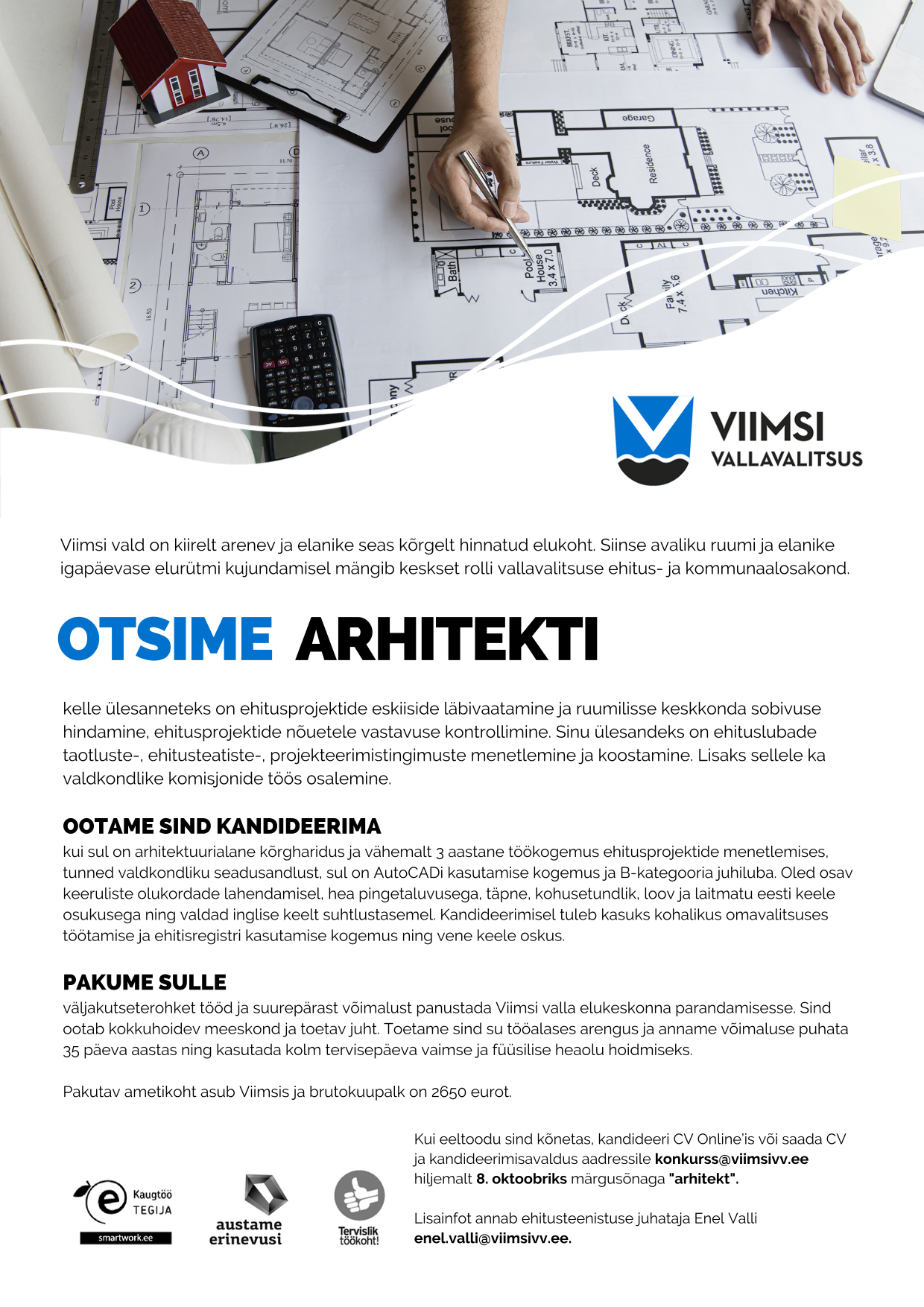 Vallavalitsus koos allasutustega on tööandjaks ligikaudu 700 töötajale, kes annavad endast parima, et vajalikud teenused oleks tagatud ja inimesed tunneksid end Viimsis hoituna. Viimsilaste nimel tegutsedes ei unusta me ka enda töörõõmu - oleme 2022. aastast tunnustatud tervisliku töökohana ning liitunud mitmekesisuse kokkuleppega. Väärtustame paindlikku töökorraldust ja omame Kaugtöö tegija märgist.