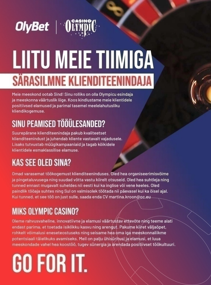 Olympic Casino on 1993. aastast Eestis tegutsev erakapitalil põhinev teenindusettevõte, mis on tänaseks kasvanud 6-s riigis 3100 töötajaga tegutsevaks rahvusvaheliseks kontserniks. Olympic Casino missiooniks on pakkuda kvaliteetset ja meelelahutuslikku kasiinoelamust ning nüüdisaegseid hasartmänge aktiivsetele ja head teenindust hindavatele klientidele sõbralikus ja turvalises keskkonnas.