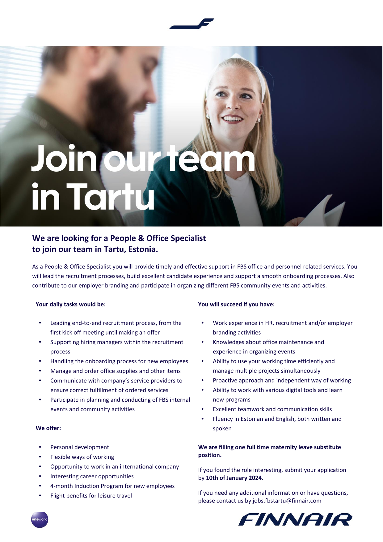 Finnair Business Services (FBS) is an Estonian company located in Tartu, Estonia. Tartu as a city is a small yet buzzling center of university students and a hub for innovation and science.
