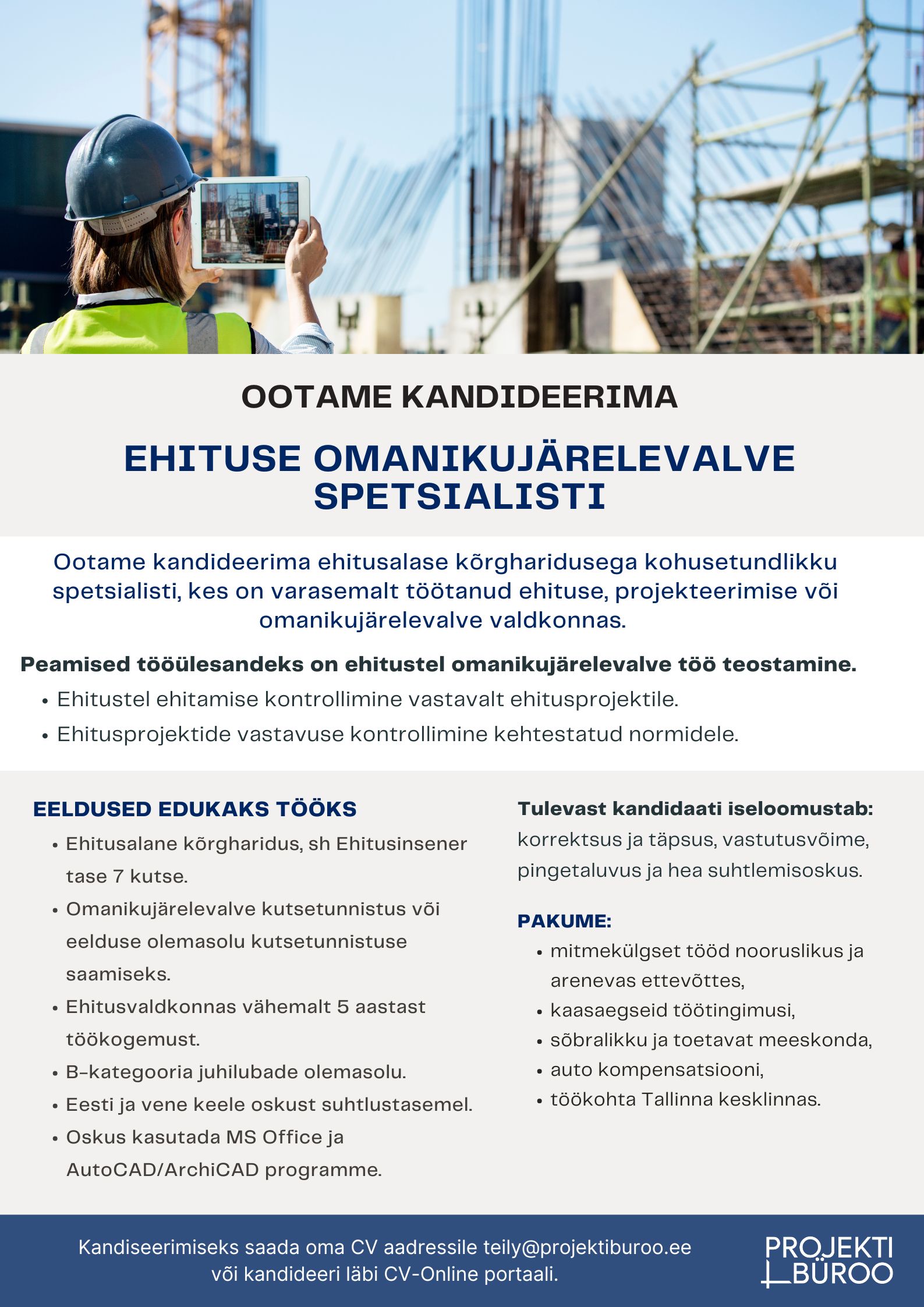 Projektibüroo OÜ on hoonete projekteerimise ja seadustamisega tegelev ettevõte, kes kuulub Eesti kolme suurima peaprojekteerimisega (hoonete ja rajatiste projekteerimisega) tegeleva ettevõtte hulka. Sealhulgas ettevõtte teenuste portfelli kuuluvad ekspertiisid, omanikujärelvalve ja tellija konsultatsioonid.