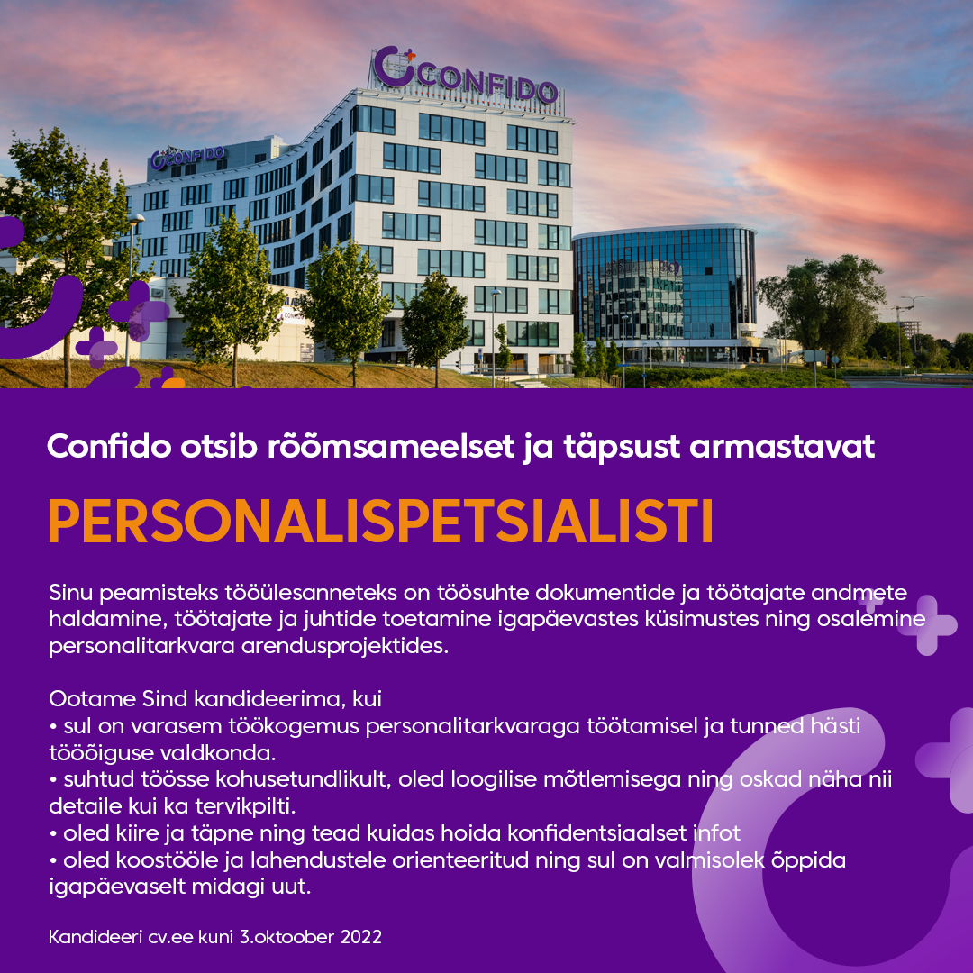 Confido personaliosakond otsib rõõmsameelset, avatud, loomu poolest täpsust armastavat