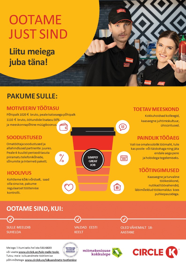 Muuda oma igapäevaelu lihtsamaks - säästa aega ja tule tööle kodukoha lähedal asuvasse mainekasse ettevõttesse Circle K.