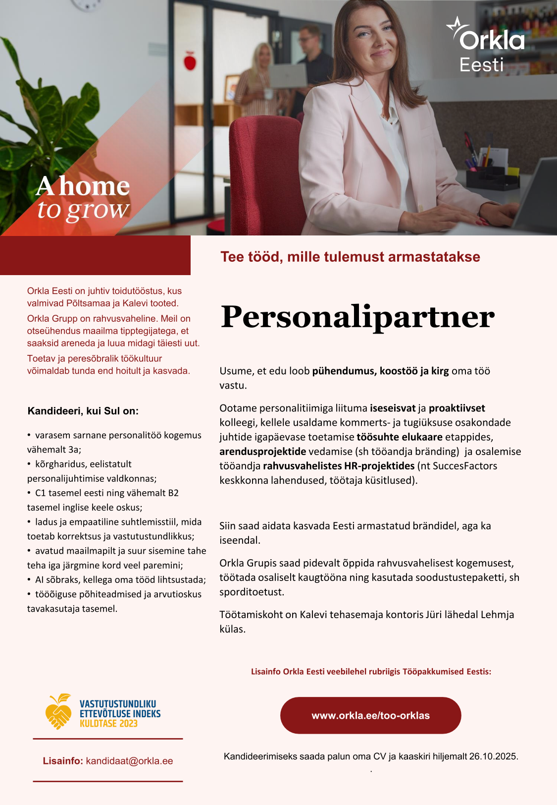 ORKLA EESTI AS on Eesti juhtiv toiduainetetööstusettevõte, kuhu kuuluvad maiustusi valmistav KALEVI tehas ja valmistoite ning mahlu tootev PÕLTSAMAA tehas. Ühendame endas pikaajalisi traditsioone ja kogemusi ning innovaatilist tulevikku suunatud hoiakut. Meie toodangu peamisteks sihtturgudeks on lisaks Eestile teised Balti riigid ja Skandinaaviamaad. Kalevi ja Põltsamaa kaubamärgid on juba aastaid Eesti armastatuimate seas. Kuulume Põhjamaade juhtivasse toiduainete ja esmatarbekaupade kontserni Orkla.